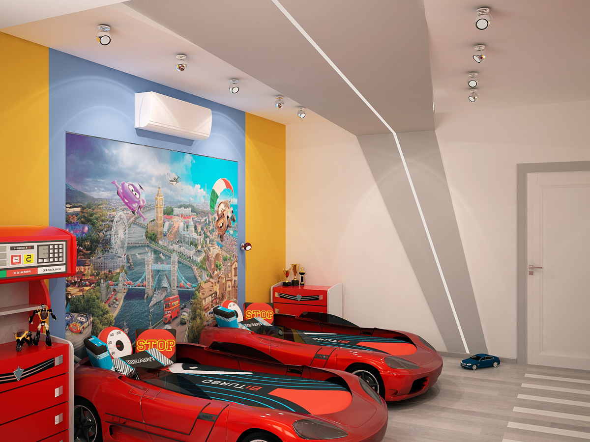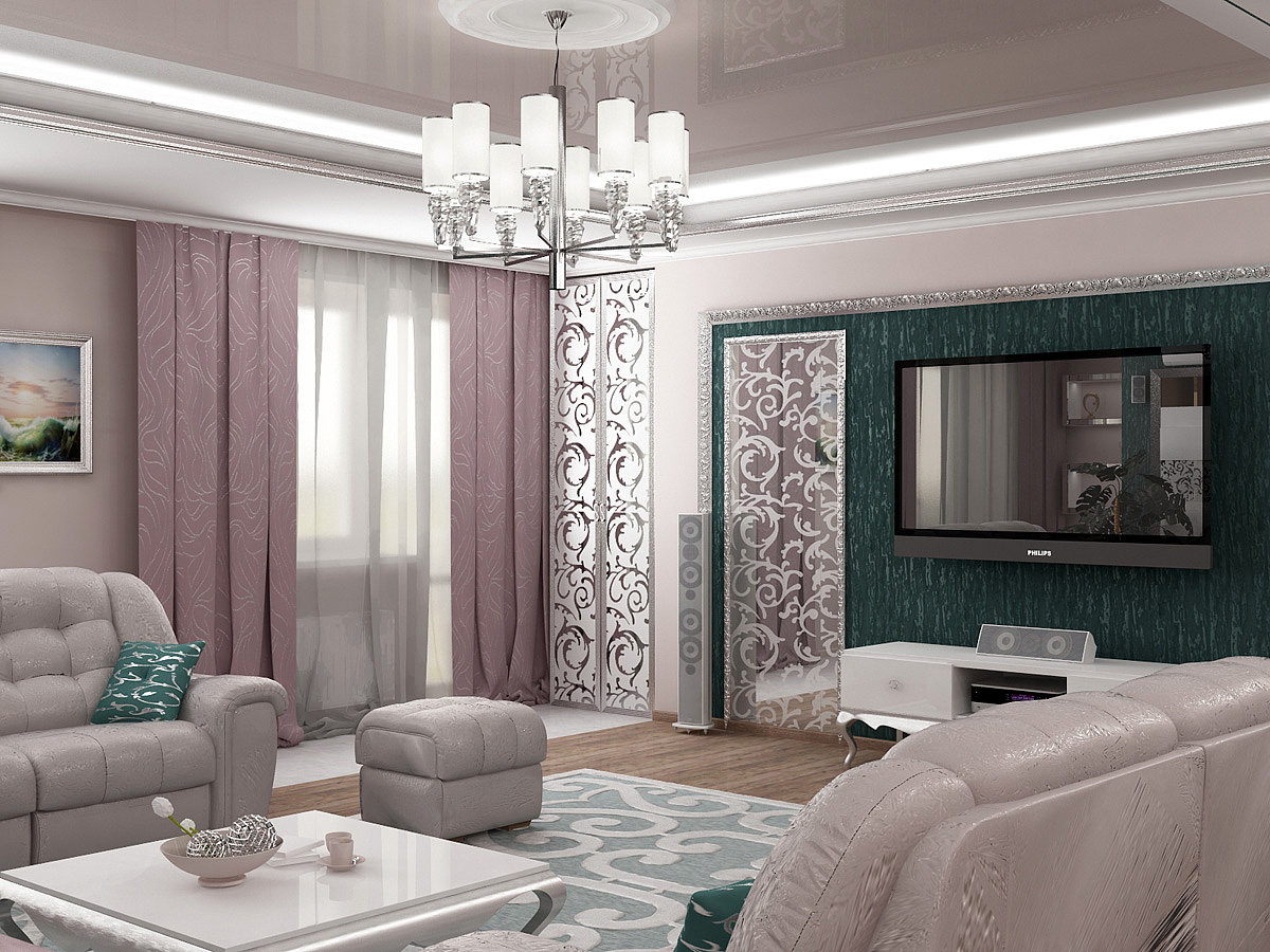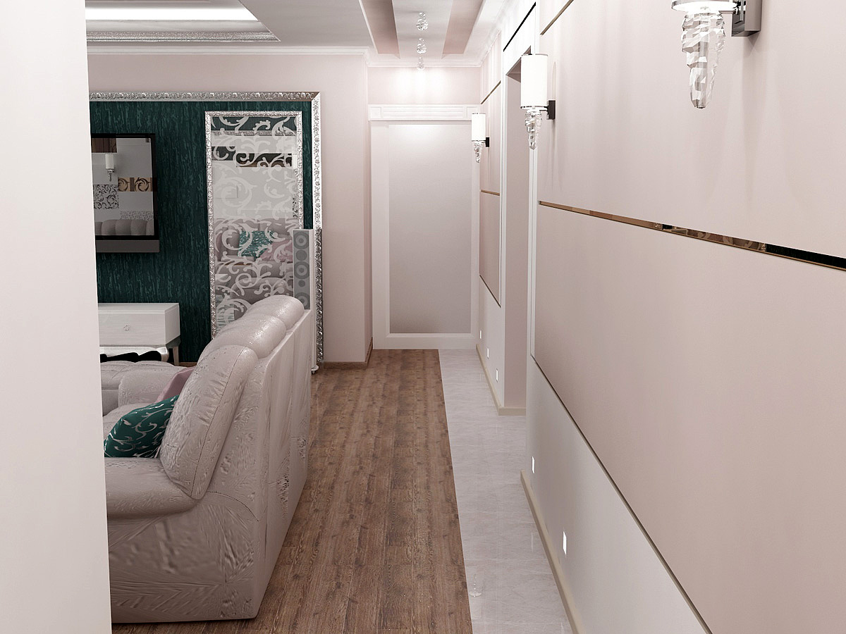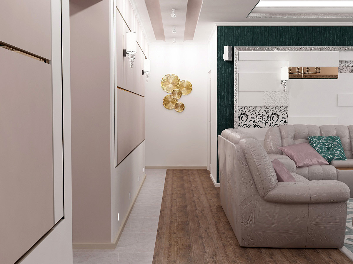 Интерьер этой квартиры для молодой семьи с большим количеством детей получился особенным, запоминающимся. Яркие элементы ар-деко придали современному пространству новое звучание. Витражи, характерные геометрические орнаменты в декоре стен и пола, благородные материалы отделки - все это помогло сделать функциональный и удобный интерьер максимально эффектным и даже немного театральным.