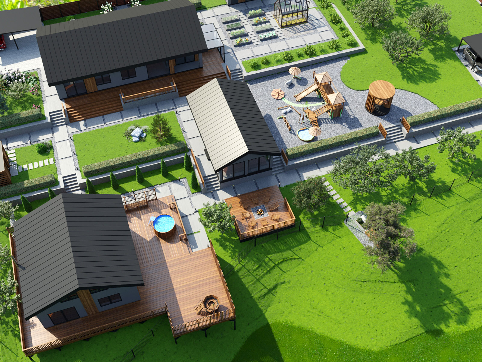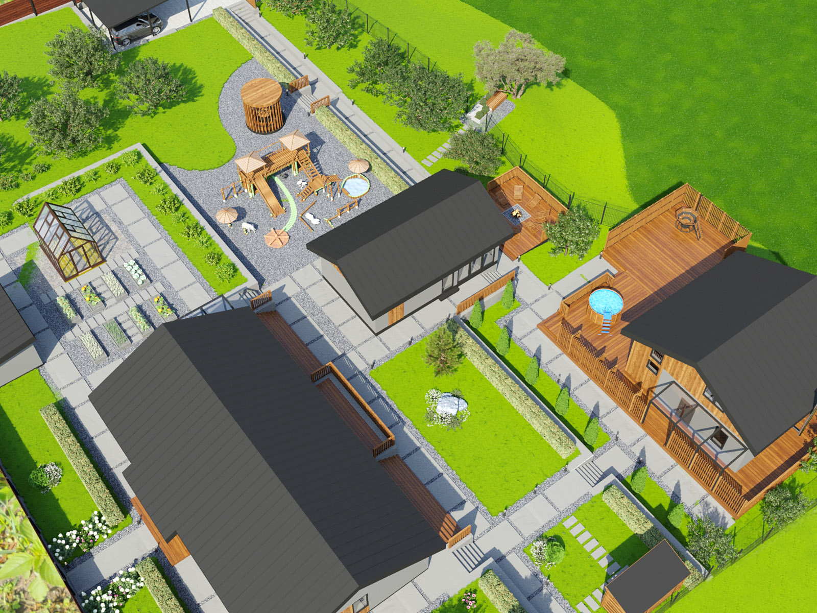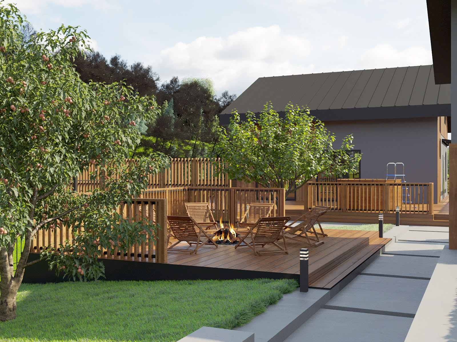 Предлагаем вам красивое и эргономичное пространство под открытым небом. Мы по максимуму использовали природные возможности участка и превратили заброшенную, неблагоустроенную территорию в уютный уголок отдыха для большой дружной семьи.