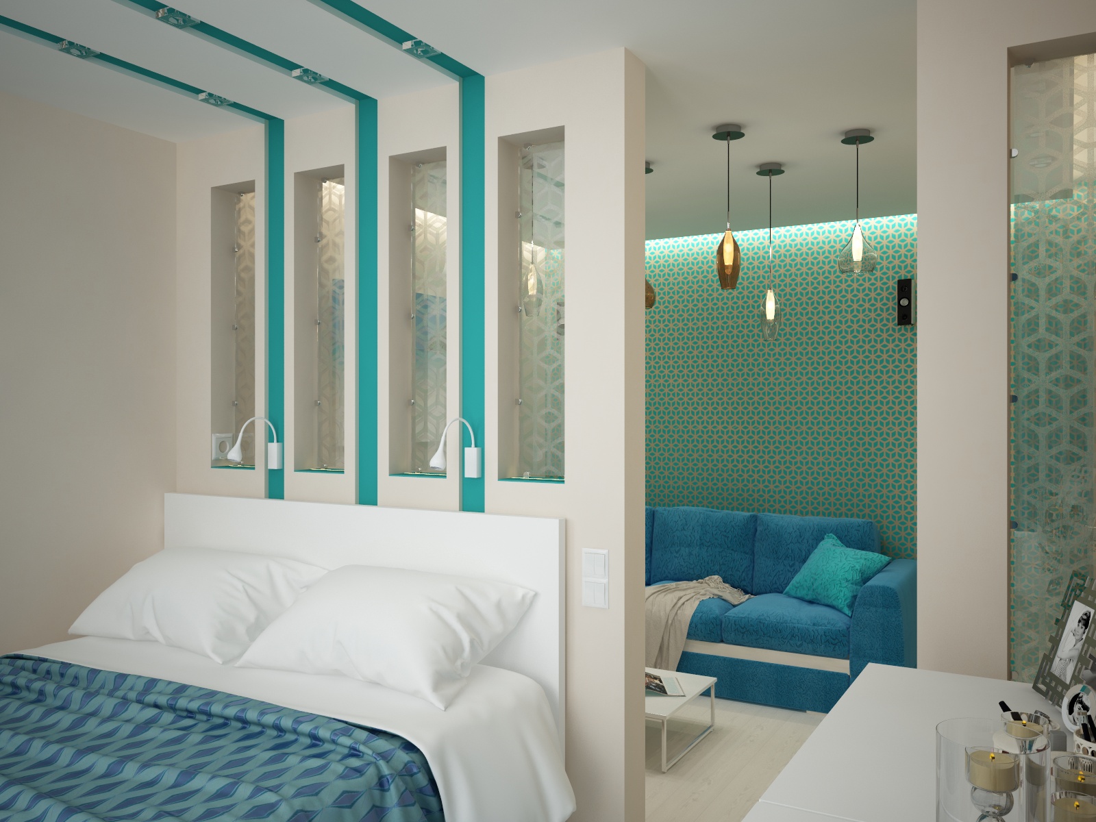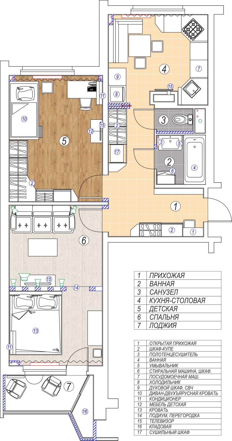 Дополнительно в гостиной организовать спальную зону для родителей.