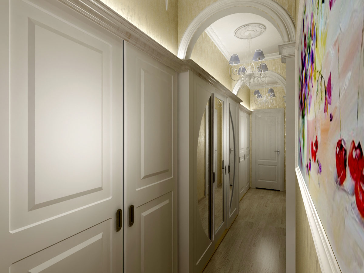 Легкость интерьерам придали бликующие поверхности зеркал и стекла, серебристые и золотые детали в отделке, хрустальные подвески люстр и разнообразные светильники. В комнатах предусмотрена также различная подсветка, что обогащает сценарии освещения.
