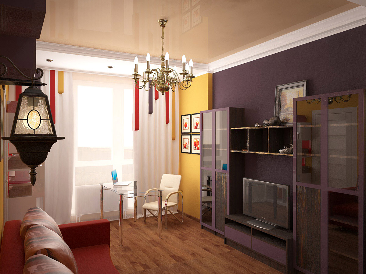 Гостиная - место, где будут создаваться разнообразные креативные вещи. Она предстает пред нами в ярком колорите, насыщенных цветах и с необычными стеллажами, где есть даже тропинка для кошки.