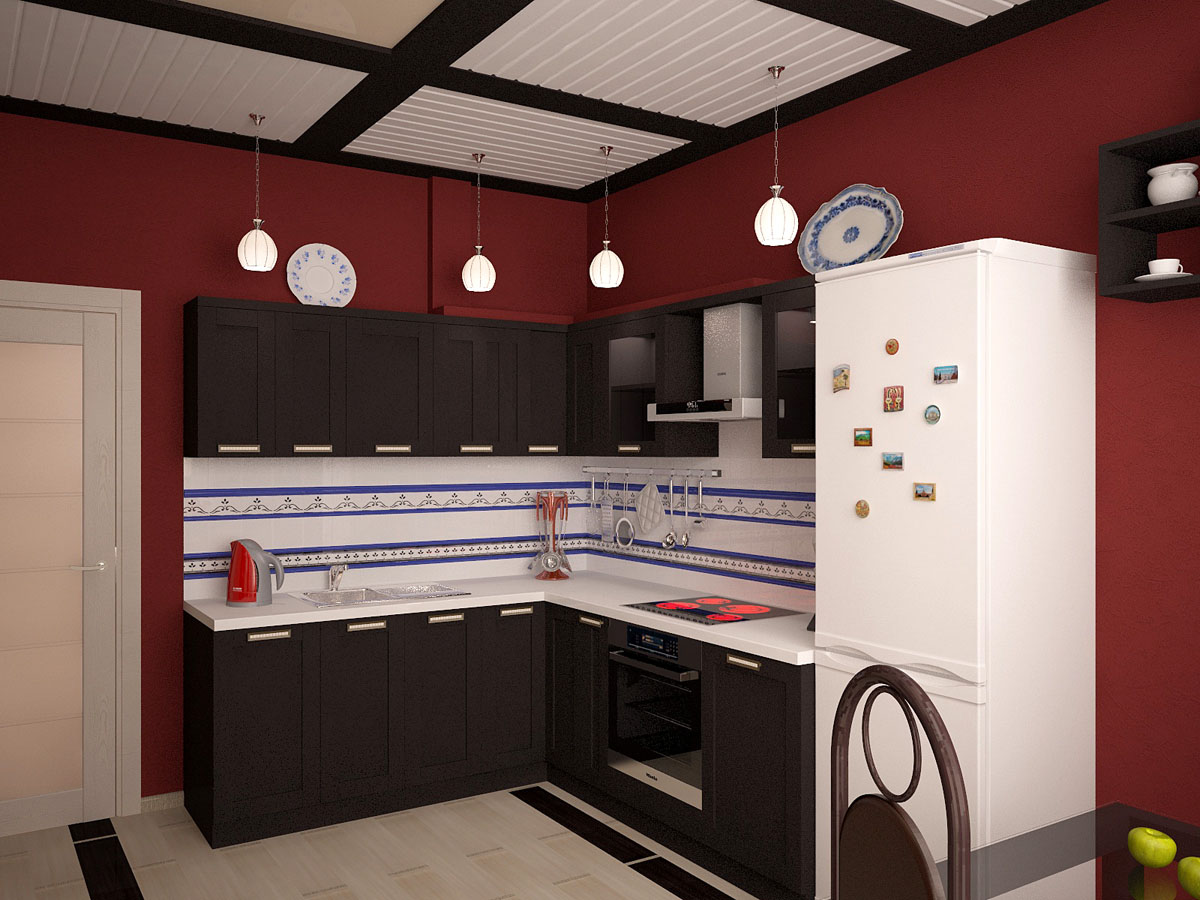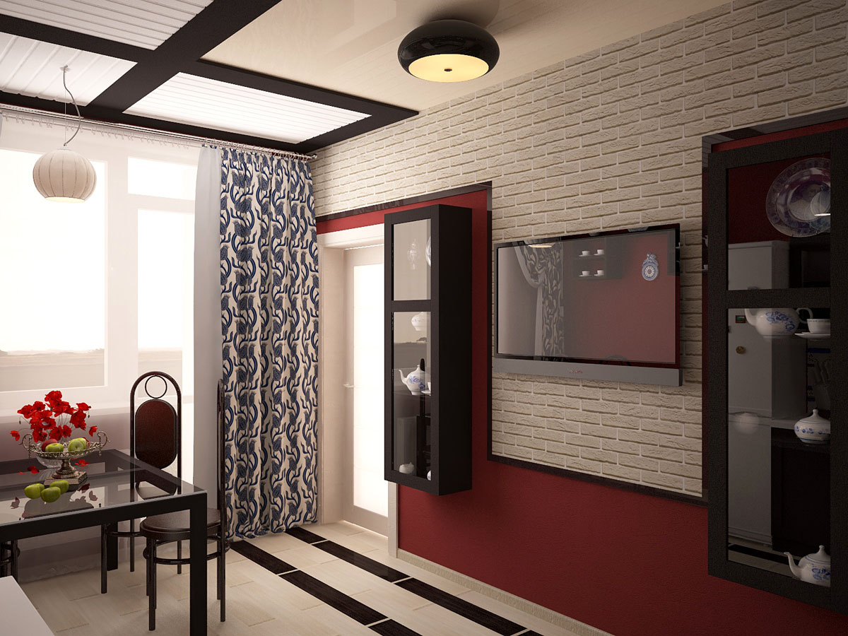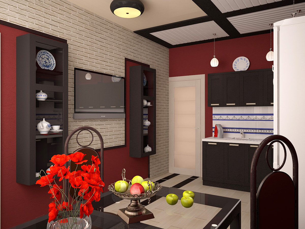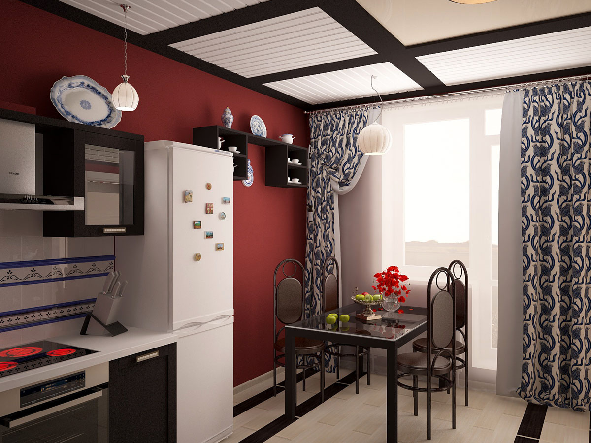 В кухонной зоне мы совместили нотку востока с гжельской росписью, придавая интерьеру необычное направление.