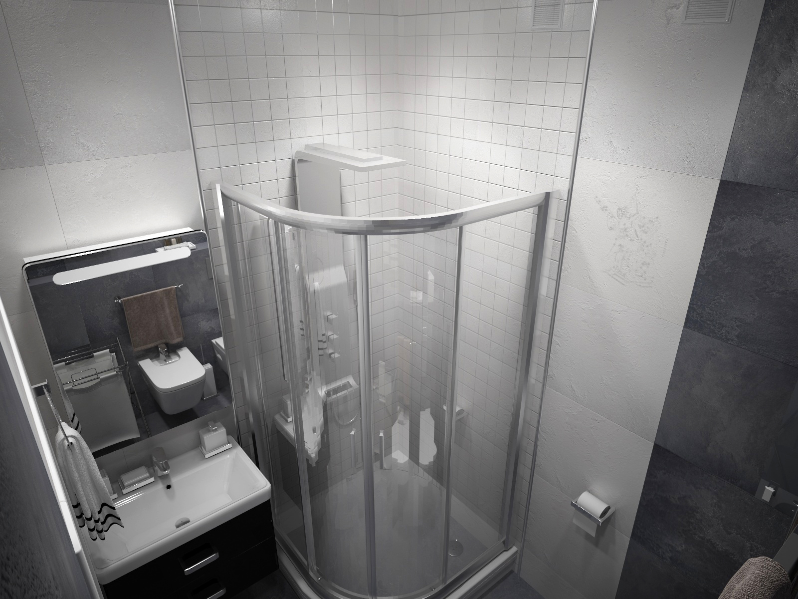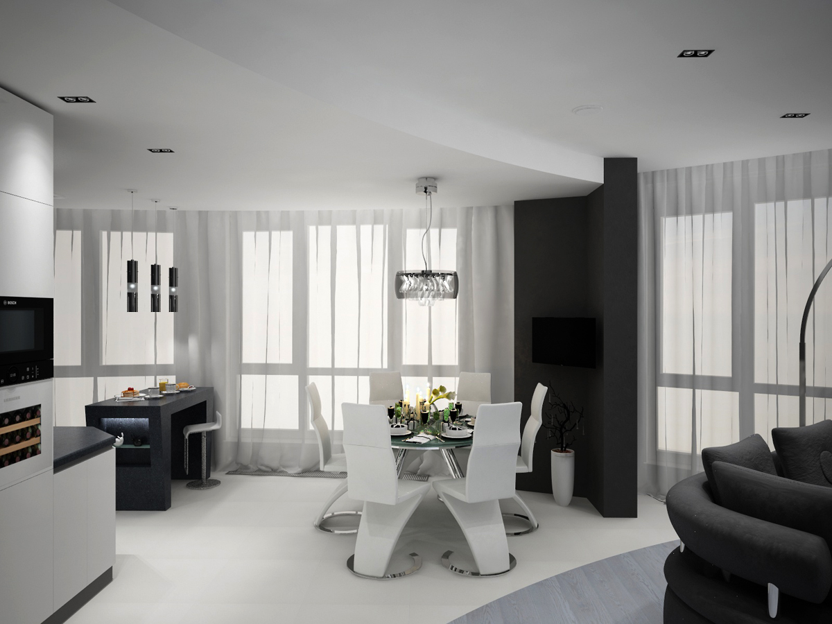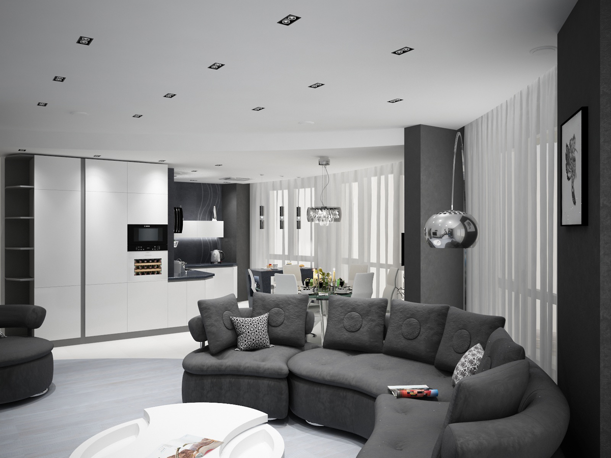 Формируя пространство мы внимательно поработали с геометрическими формами, которые переходят одна в другую, усложняя пространство и одновременно придавая ему четкости. Создать этот выразительный и стильный интерьер в современном стиле нам помогли два базовых цвета: черный и белый, оттенки серого в дополнении и соединении дали гармоничный результат - графичный проект, лёгкий по линиям и звенящий по чистоте приемов.